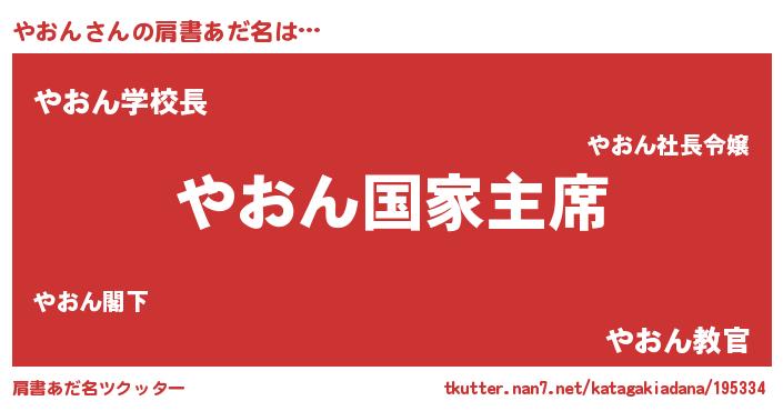 | 女子向けラノベタイトル風あだ名 | 『やおんの雑貨屋さん』『闇のやおん』 |