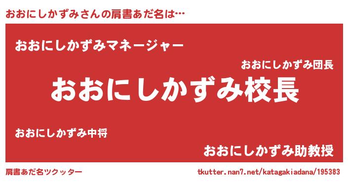 | 男性向けラノベタイトル風あだ名 | 『おおにしかずみという概念が存在しない退屈な世界 』 |