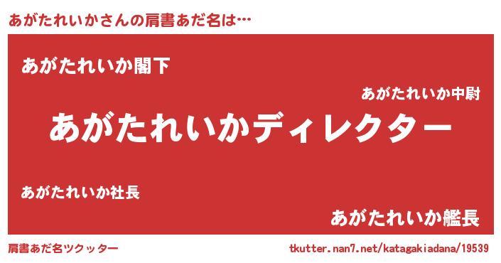 | 意味不明あだ名 | 『自称あがたれいか』 |