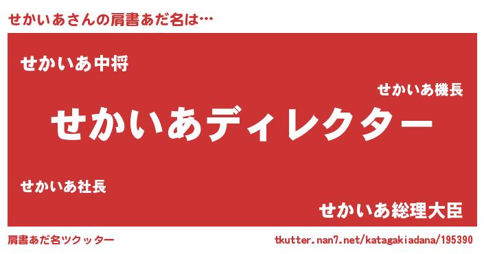 | ヒーロー風カッコイイあだ名 | 『ウルトラせかいあマン』『ネオセカイア』 |
