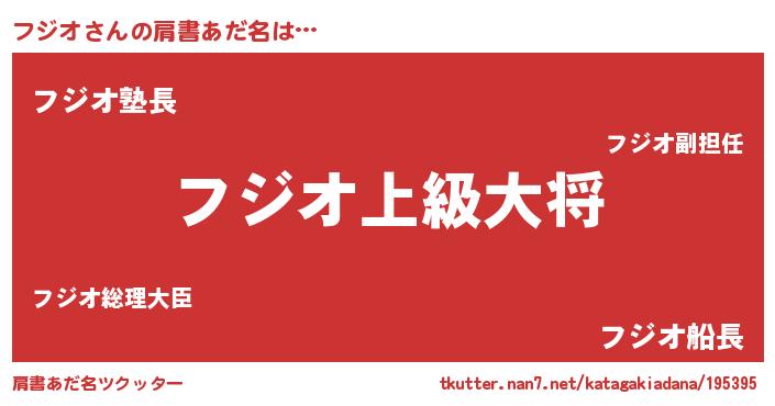 | ポケモン風あだ名 | 『フジキング』『ヒフジオ』 |
