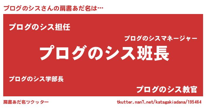 | 胡散臭い通販商品みたいなあだ名 | 『信頼と実績のネックレス…その名も「プログのシス」』 |