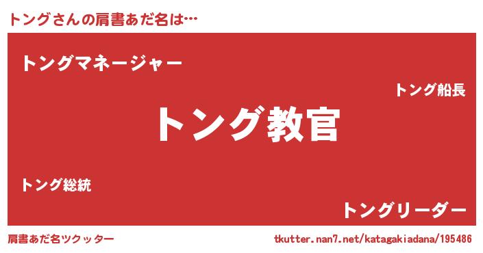 | ポケモン風あだ名 | 『トーンイ』『トンゴンZ』『ヒトング』 |