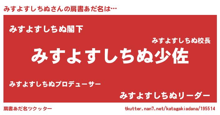 | ヘコむあだ名 | 『みすお』『みすよすしちぬ(笑)』 |
