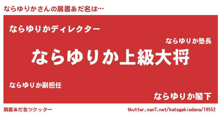 | ヘコむあだ名 | 『ならぷりん』『ならゆりか(苦笑)』 |