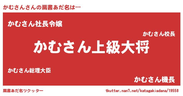 | 女子向けラノベタイトル風あだ名 | 『かむさんの玉の輿計画!』 |