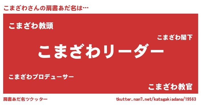 | 意味不明あだ名 | 『とにかく怪しいこまざわ』 |