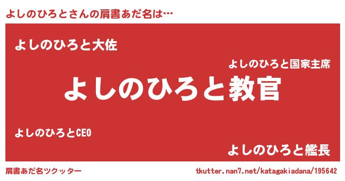 | 男性向けラノベタイトル風あだ名 | 『魔弾の王とよしのひろと』 |