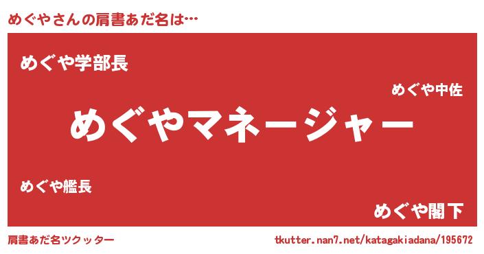| 意味不明あだ名 | 『眠気覚ましガムめぐや味』『自称めぐや』 |