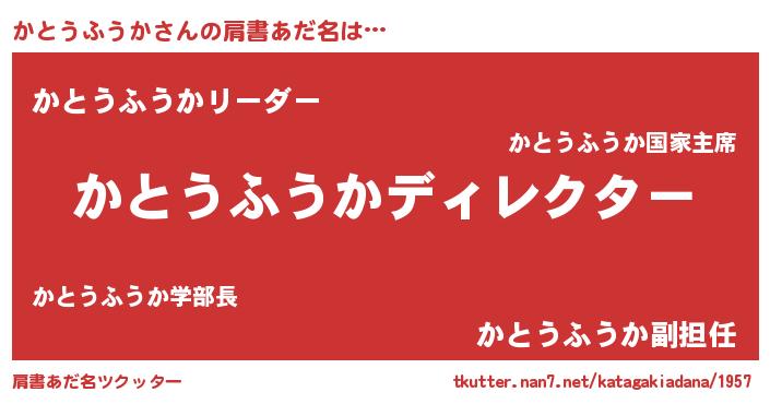 | 意味不明あだ名 | 『とにかく怪しいかとうふうか』 |