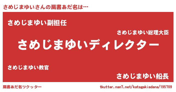 | 胡散臭い通販商品みたいなあだ名 | 『絶対に幸福をもたらす健康食品…その名も「さめじまゆい」』 |