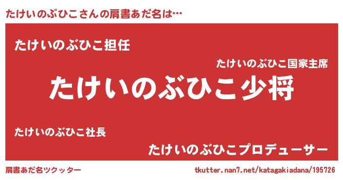 | 男性向けラノベタイトル風あだ名 | 『タケイノブヒコスレイヤー』 |