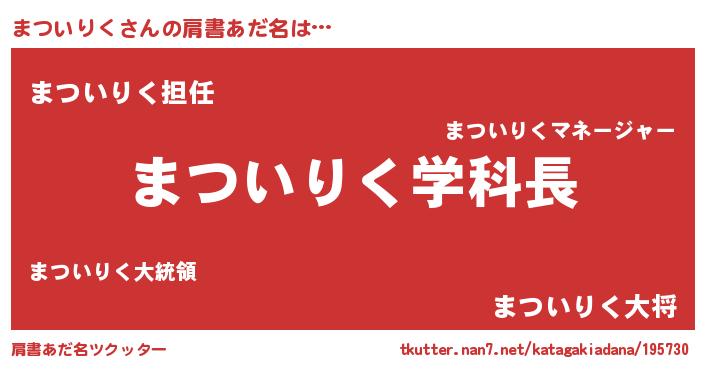 | ヒーロー風カッコイイあだ名 | 『慈愛の使者まついりく』 |