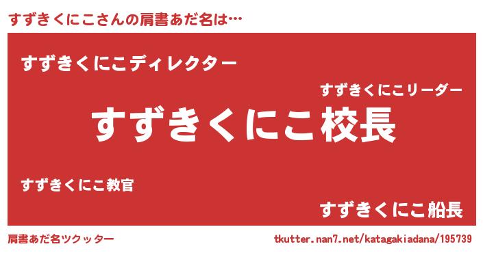 | ヒーロー風カッコイイあだ名 | 『ネオスズキクニコ』『炎刃騎士スズ』 |