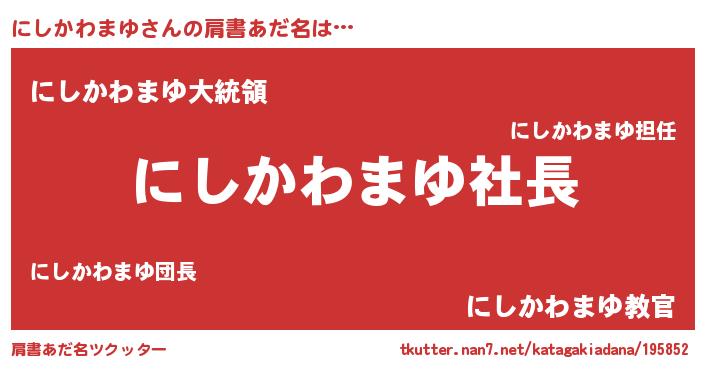 | ヒーロー風カッコイイあだ名 | 『スーパーニシカワマユ』『仮面ニシダー』 |