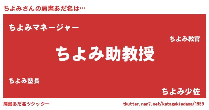 | 欧米人風あだ名 | 『ダニエルちよみ』『アンジェラ・ちよみ』 |