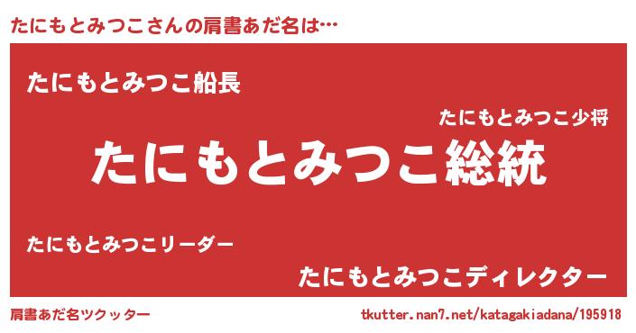 | 意味不明あだ名 | 『自称たにもとみつこ』 |