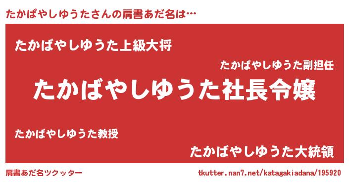 | 女子向けラノベタイトル風あだ名 | 『(仮)たかばやしゆうたのやんごとなき事情』 |