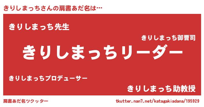 | ヘコむあだ名 | 『きりぷりん』『きりしまっち(笑)』 |