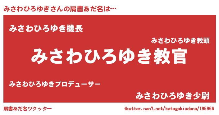 | 意味不明あだ名 | 『住所不定無職みさわひろゆき(11歳)』 |
