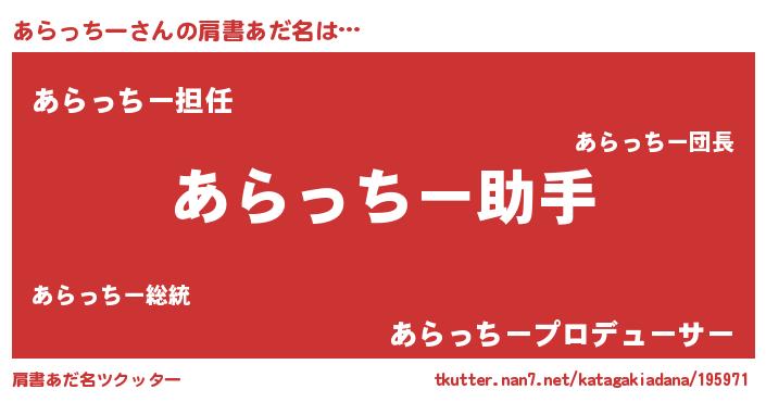 | ヘコむあだ名 | 『あらっちー(笑)』『あらっちょ』 |