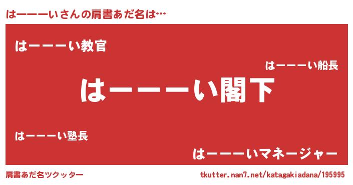 | 意味不明あだ名 | 『自称はーーーい』『永久保存はーーーい』 |