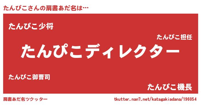 | 男性向けラノベタイトル風あだ名 | 『たんぴこに滅ぼされるだけの簡単なお仕事です』 |