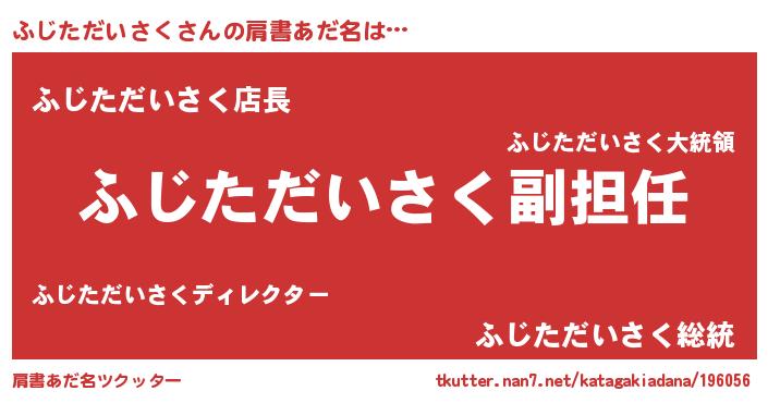 | ヘコむあだ名 | 『ふじただいさく(遠い目)』『ふじにゅー』 |