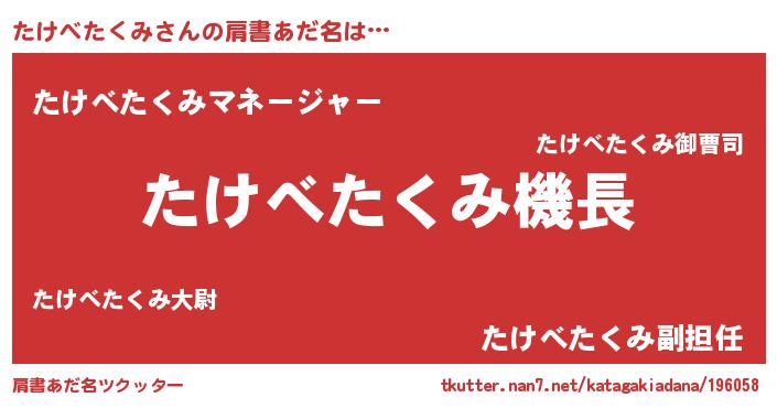 | ヘコむあだ名 | 『たけべたくみ(震え声)』『たけふぇ~』 |