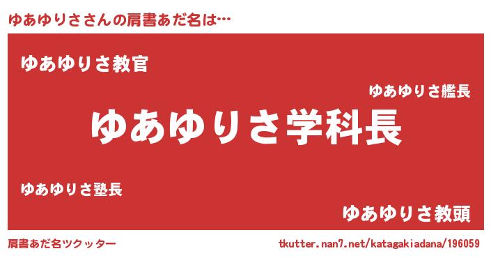 | ヘコむあだ名 | 『ゆあゆりさ(苦笑)』『ゆあを』 |