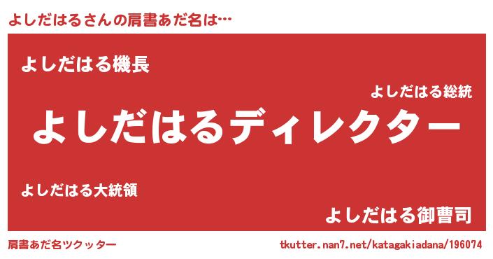 | 男性向けラノベタイトル風あだ名 | 『はたらくよしだはるさま!』 |