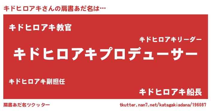 | 男性向けラノベタイトル風あだ名 | 『キドヒロアキに滅ぼされるだけの簡単なお仕事です』 |