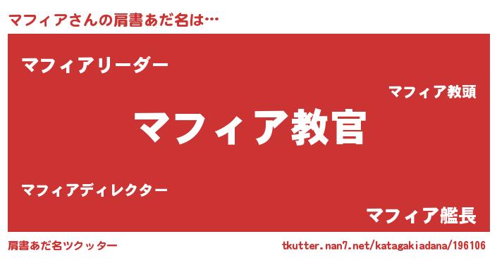 | 男性向けラノベタイトル風あだ名 | 『この素晴らしい世界にマフィアを!』 |