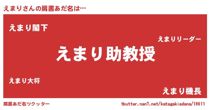 | 男性向けラノベタイトル風あだ名 | 『おまえをオタクにしてやるから、俺をえまりにしてくれ! 』 |