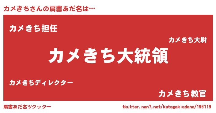 | 意味不明あだ名 | 『カメきちフォーエバー』 |
