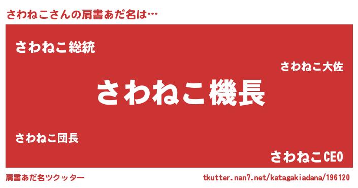 | 意味不明あだ名 | 『自称さわねこ』『ペロリンさわねこ』 |