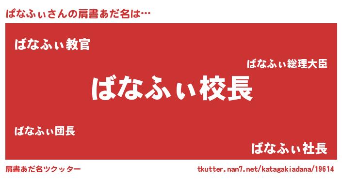 | ヘコむあだ名 | 『ばなふぃ(爆)』『ばなにー』『豆乳』 |