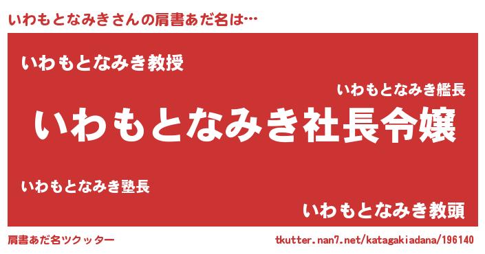 | ヘコむあだ名 | 『いわもー』『いわもとなみき(小並感)』 |