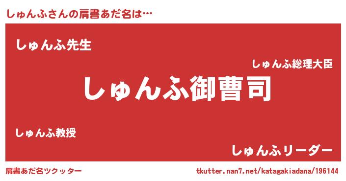 | 女子向けラノベタイトル風あだ名 | 『しゅんふ姫と円卓の騎士』 |