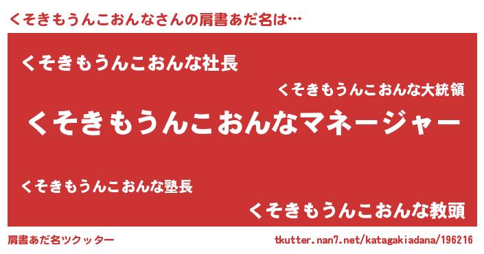 | 欧米人風あだ名 | 『アンジェラ・くそきもうんこおんな』 |