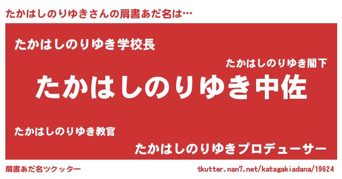 | 男性向けラノベタイトル風あだ名 | 『たかはしのりゆき~年齢イコール彼女いない歴の魔法使い~』 |