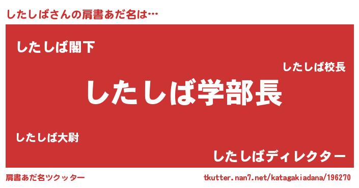 | 男性向けラノベタイトル風あだ名 | 『ノーゲーム・ノーシタシバ』 |