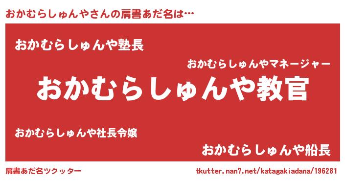 | 男性向けラノベタイトル風あだ名 | 『この素晴らしい世界におかむらしゅんやを!』 |