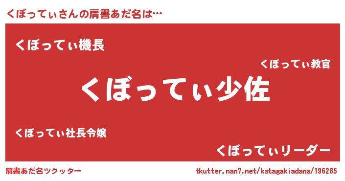 | 胡散臭い通販商品みたいなあだ名 | 『信頼と実績のサプリメント…その名も「くぼってぃ」』 |