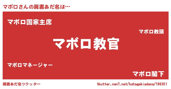 | 男性向けラノベタイトル風あだ名 | 『魔弾の王とマボロ』 |