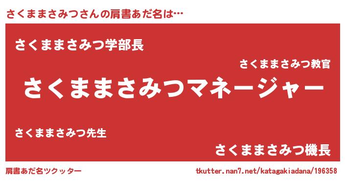 | 男性向けラノベタイトル風あだ名 | 『さくままさみつに滅ぼされるだけの簡単なお仕事です』 |