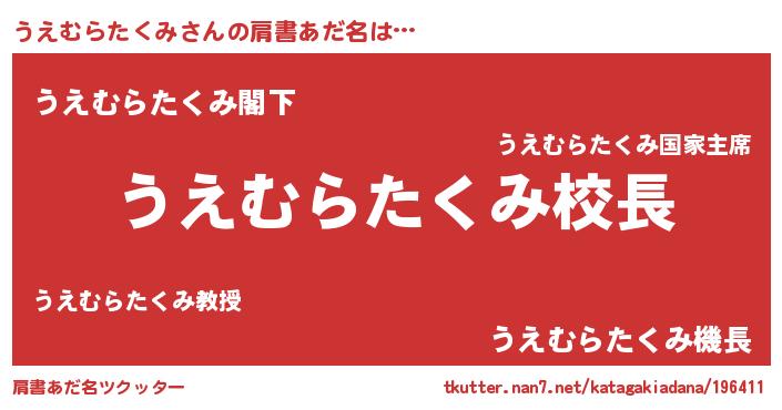 | 意味不明あだ名 | 『永久保存うえむらたくみ』 |
