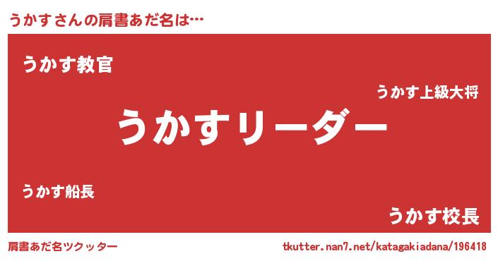 | ヒーロー風カッコイイあだ名 | 『暗黒騎士ウカ』『仮面ウカダー』 |
