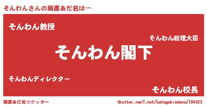 | ヘコむあだ名 | 『そんわん(小並感)』『酢こんぶ』 |