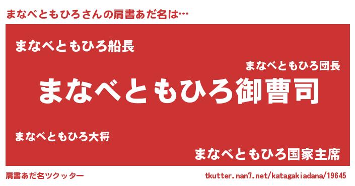 | 胡散臭い通販商品みたいなあだ名 | 『モテモテ間違いなし霊験あらたかなお札…その名も「まなべともひろ」』 |